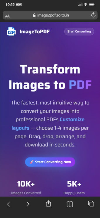 The platform offers a free online service to convert image files (JPG, PNG, BMP, TIFF, etc.) into PDF format.